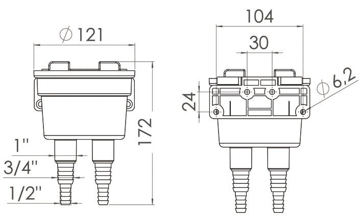 - Conector de la manguera: 13 mm (1/2 '') - 19 mm (3/4 '') - 25 mm (1 '')