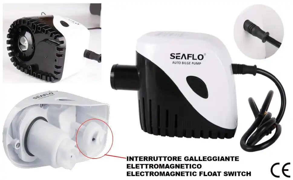 Seaflo 750GPH Bomba de agua de sentina sumergible automática para barcos. Nuestro revolucionario diseño patentado. Bomba e interruptor de flotador todo en uno. No se requiere interruptor de flotador adicional. La bomba se enciende cuando el nivel del agua sube y se apaga cuando se retira el agua. ¡Interruptor de flotador magnético incorporado para mayor duración! (No se necesita un interruptor de flotador separado)