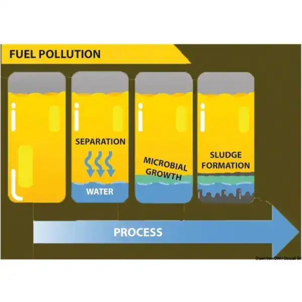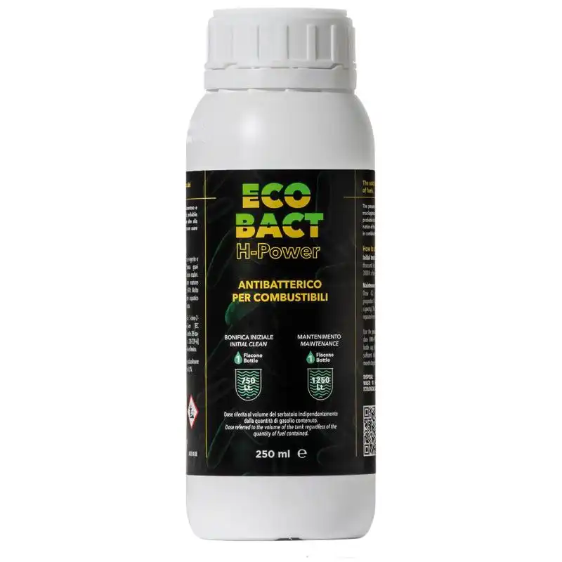La contaminación bacteriana del diésel es un problema muy serio y complejo que se ha vuelto cada vez más común últimamente. A diferencia de los "lodos clásicos del diésel" (parafinas, residuos de carbono y alquitranes), que se hacen fluidos con Fastol y se reintegran en el combustible, los lodos bacterianos solo son solubles en ácidos. Basta con unos pocos ppm de agua para favorecer el crecimiento de tales bacterias. Los residuos producidos por la colonia bacteriana se presentan en forma de mucílago, algas, moho o filamentos, aumentando rápidamente y obstruyendo filtros y tuberías, provocando fallos e incluso la detención del motor. Su proliferación también desencadena procesos de corrosión en el tanque. ECO-BACT H-Power es un biocida que se ha potenciado en su principio activo: manteniendo la eficacia de la formulación anterior, requiere dosis más bajas con un costo de operación muy bajo. Es soluble tanto en agua como en diésel y se concentra en la fase acuosa del diésel, donde la concentración de contaminación es mayor. ECO-BACT H-Power puede ser utilizado tanto para remediar un tanque ya contaminado como como tratamiento periódico de prevención y/o mantenimiento.