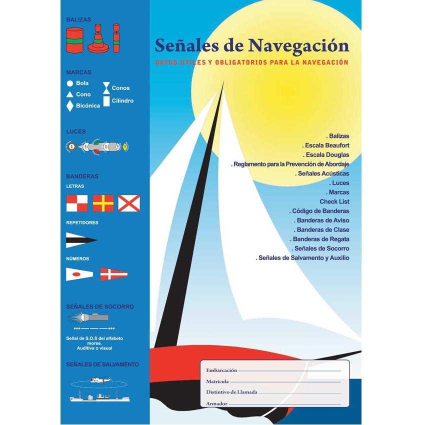 Desplegable que contiene datos útiles y obligatorios para la navegación: Balizas, Escala Beaufort, Escala Douglas, Reglamento para la Prevención de Abordajes, Señales Acústicas, Luces, Marcas, Check List, Código de Banderas, Banderas de Aviso, Banderas de Clase, Banderas de Regata, Señales de Socorro y Señales de Salvamento y Auxilio.
