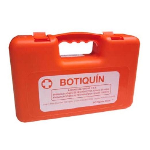 Botiquín de plástico en color naranja, con acabado mate, antideslizante, rígido y resistente al impacto. Diseñado especialmente para uso en sector naval. Contenido válido para embarcaciones de recreo de Zona 1 (Navegación ilimitada), 2 (hasta 60 millas), 3 (hasta 25 millas) y 4 (hasta 12 millas).