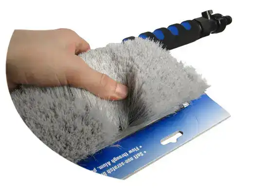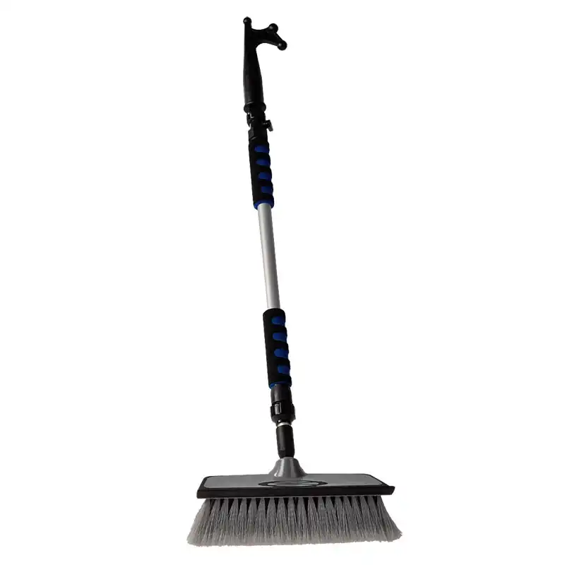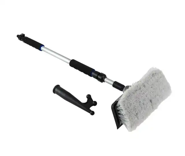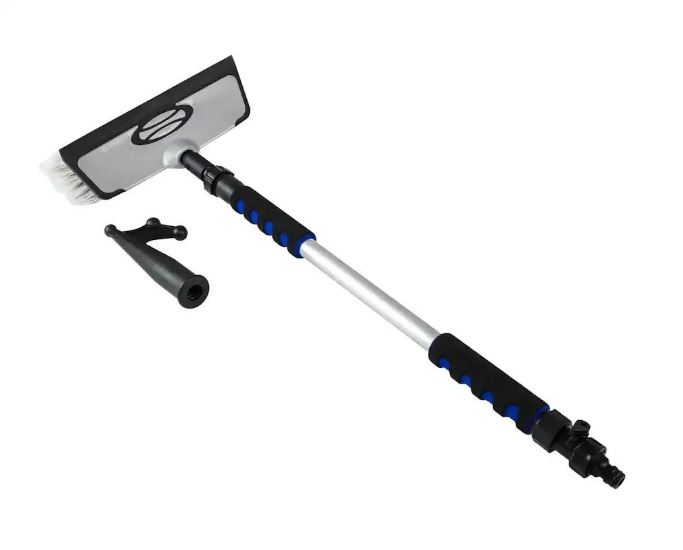 Conjunto de limpieza compuesto de soporte teléscopico con conexión a manguera, cepillo y punta de bichero.