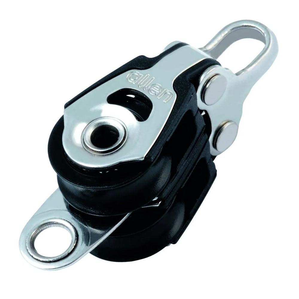 La A2022 es una polea pequeña de doble roldana, baja fricción y rápida rodadura. Es ligera y resistente, por lo que resulta ideal para embarcaciones de vela ligera, windsurf, kitesurf y cualquier otra actividad en la que se utilicen líneas de menor diámetro.