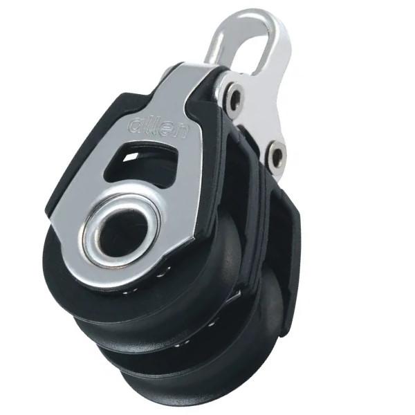 La A2032 es la polea pequeña de doble roldana, baja fricción y rápida rodadura. Es ligera y resistente, por lo que resulta ideal para embarcaciones de vela ligera, windsurf, kitesurf y cualquier otra actividad en la que se utilicen líneas de menor diámetro.