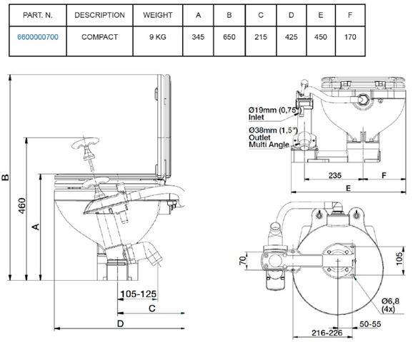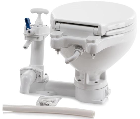 Puede sustituir fácilmente a Jabsco, RM y muchas otras marcas. Los orificios de fijación son los mismos que los del inodoro manual Jabsco. El inodoro puede montarse tanto por encima como por debajo de la línea de flotación; la bomba instalada es autocebante; el montaje reversible de la bomba para zurdos permite instalar el inodoro indistintamente en ambos lados; la descarga de desechos es posible tanto por la borda como en un tanque de almacenamiento a bordo;