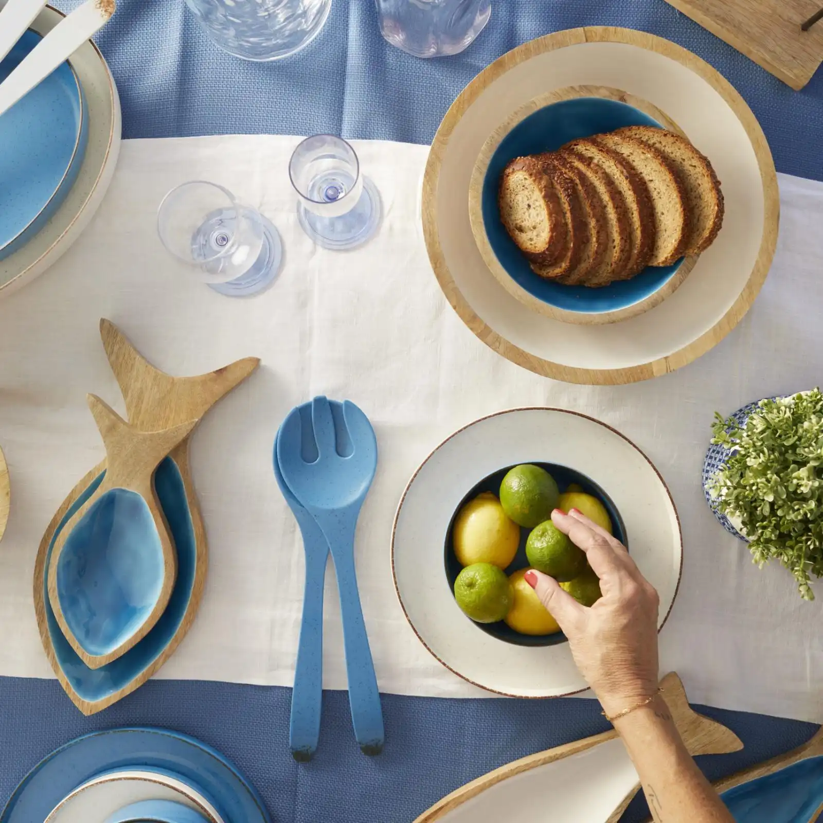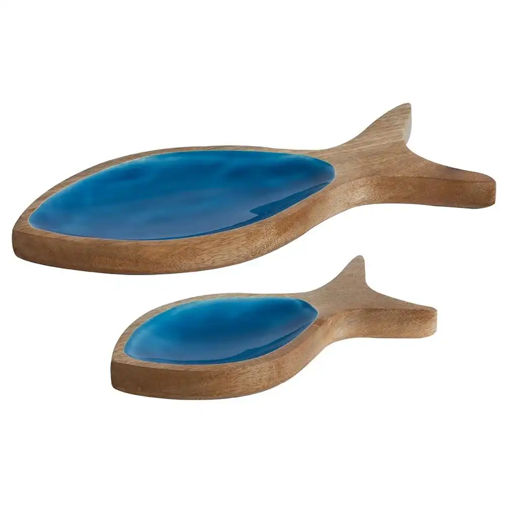 Set de dos peces decorativos de madera de mango con acabado enamel azul. Parte de la colección COCOA, ideal para decorar cualquier estancia o barco. Funcionales como vaciabolsillos para objetos pequeños como llaves y anillos. Disponibles en blanco, azul y turquesa, se combinan fácilmente con otros accesorios náuticos. Con tacos antideslizantes para mayor estabilidad durante la navegación, perfectos como regalo.