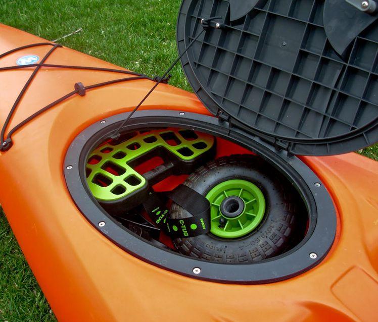 Carro para transportar el kayak o la canoa. Incorpora las cinchas para mayor sujeción y las ruedas no se pinchan porque son rígidas. Ideal para sacar las embarcaciones de la arena. Es práctico y ligero. Fabricado de polímeros de alta calidad. Se desmonta en menos de 20 segundos. No necesita herramientas para montarlo. Puede mover hasta 80kg de carga. Los ejes son de acero inoxidable. Los colores de este carro son verde y negro.
