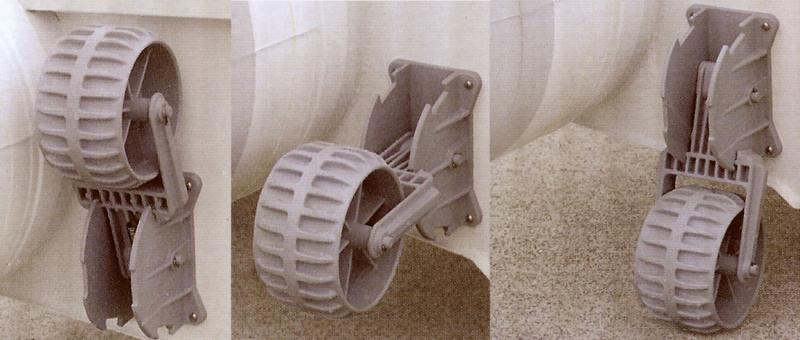 Rueda de arrastre con soporte compacto de plástico. Rueda de plástico. 3 posiciones. Elimina las antiestéticas ruedas plegadas junto al motor
