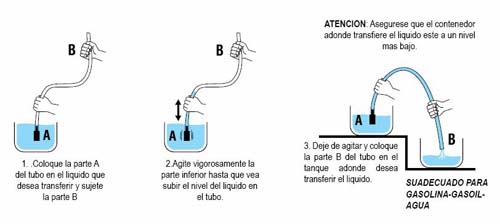 Recomendado para uso con gasolina, gasoil o agua. Bomba de succion de 12,5 o 25 mm de Ø. Longitud del tubo: 160 cm