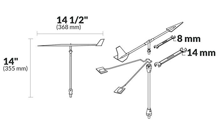 - La longitud del indicador de viento es de 14 1/2" (368 mm)