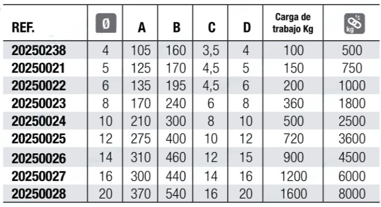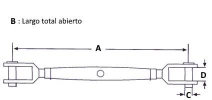 Tensor tubular inoxidable 316 de doble horquilla y anillas de seguridad.