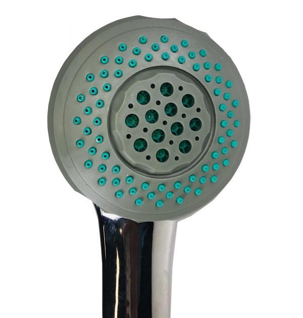 Pomo para ducha de baño con 3 presiones de salida que se pueden cambiar y graduar. Conector macho de 1/2".