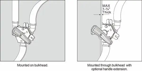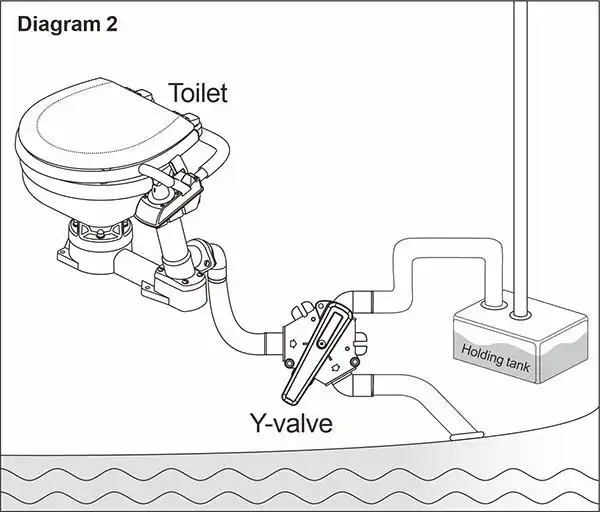 Válvula en Y robusta para uso en inodoros. Permite bombear los residuos al exterior o a un tanque de retención.